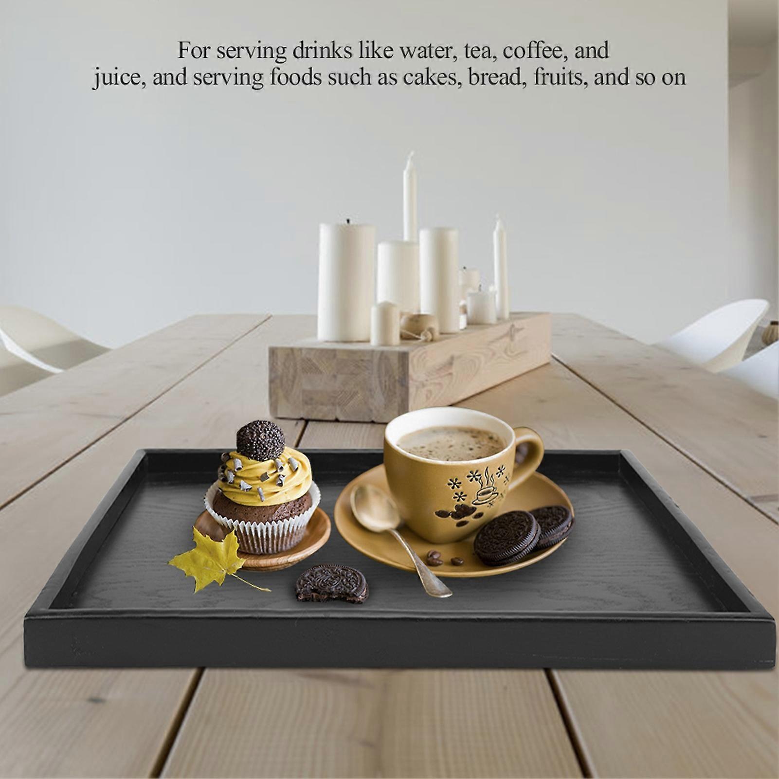 Solid Wood Rectangle Tea Tray 35x24cm Black Durable Serving Plate