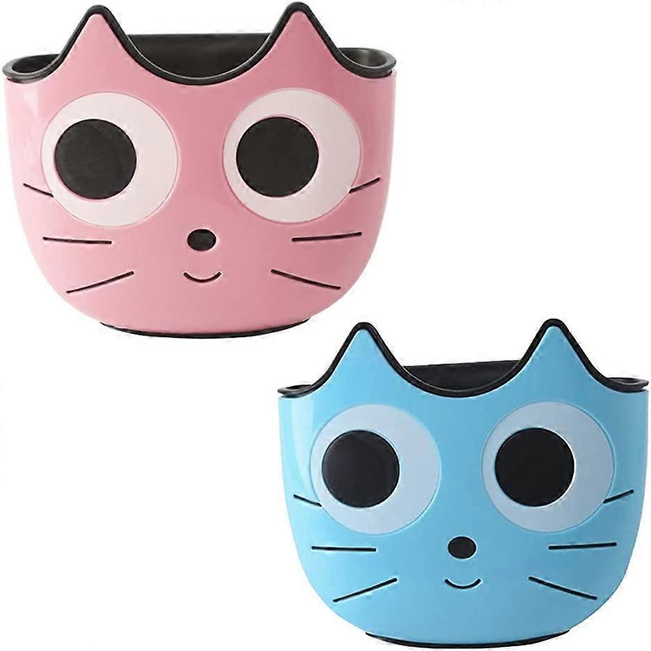 Sponge Holder,Cartoon Cat Pattern(Pink Blue)