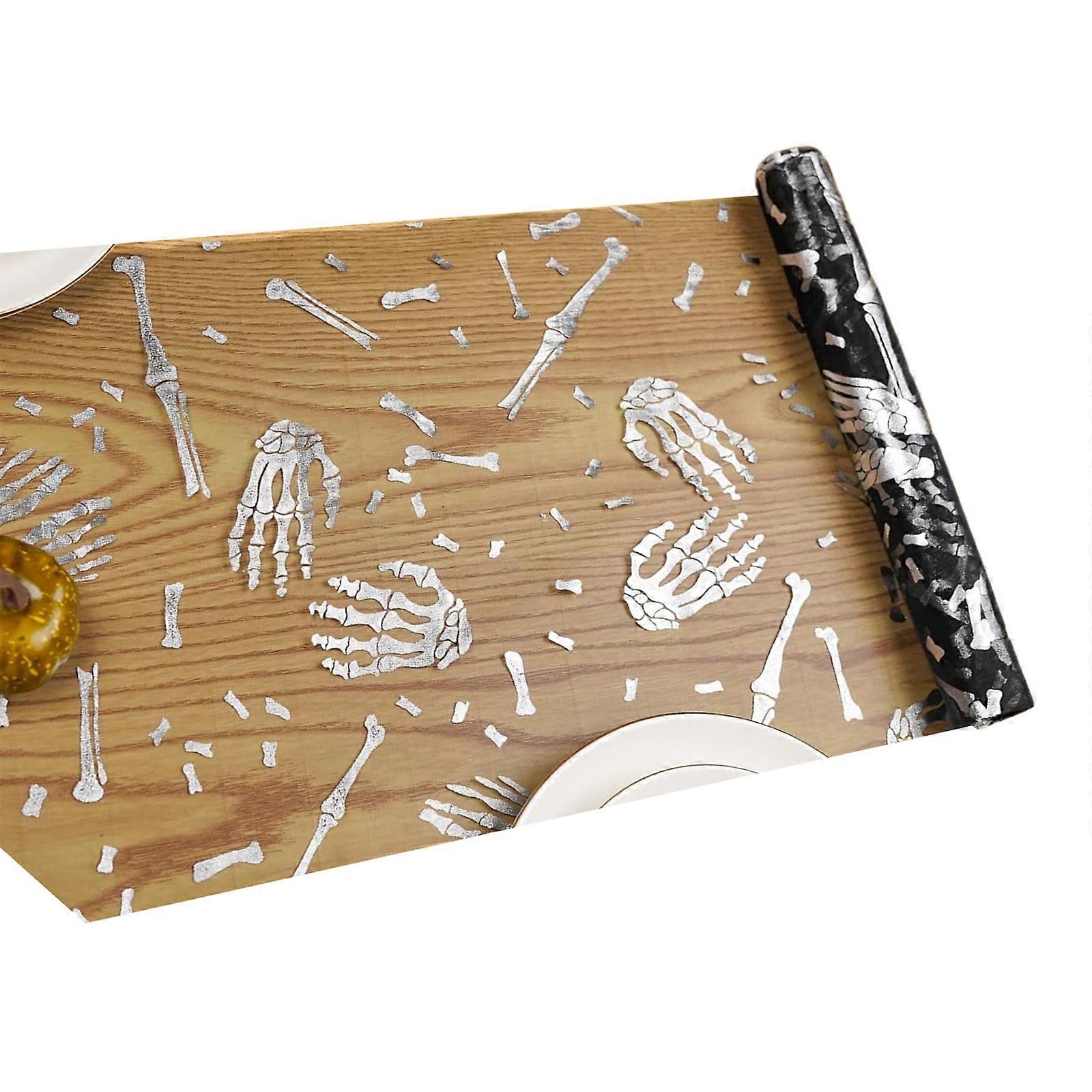 Features: Elevating your Halloween decor with this intricately skeleton hand print table runner, crafted from durability polyester for long lasted festive appeal and wrinkled resistant performances. Featuring metallic shimmering skeleton motifs on premium polyester fabric, this reusable table linen resists fading while maintaining crisps, eye catching detail. Perfect for busy homemakers, party planners, and households with children/pets seeking safe, easy to clean holiday decorations that withstand repeated seasonal use. Transform dining tables into haunting centerpieces for Halloween parties, horror themed birthdays, or autumn harvest gatherings with this versatile decorative accent. Versatile 197Inch Length: it fits most tables (round, square, rectangular). Cut to customize into photo booth backdrops, chair sashes, or Halloween placemat – ideal for event venues. Specifications: Component: Polyester Color: Black and Silver Size: approx. 28x500cm/11.02x196.85in Package Includes: 1pc Halloween net table runner note: Please allow 1-3cm error due to manual measurement. please make sure you not mind before you bid. Due to the differences between different monitors, the picture may not reflect the item actual color.