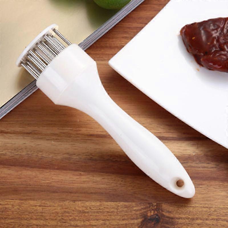 Break down meat fibersStainless steel tips break down stubborn meat fibers and useful for piercing meats before marinating, improve the taste and tenderness of meat; Superior MaterialMade of food grade stainless steel, perfect polishing, 21 needle construction with easy to use ABS plastic handle. Keep the meat fresh, the seasoning can be completely and quickly into the meat; Save time The meat tenderizer needle effectively shortens the cooking and cooking time, you can get started road with this tenderizer in just a few minutes and make it tastier; Safe to use Safety lock prevents accidents; Safety storage cap included; So you can relax and achieve professional cooking results with complete peace of mind; Size: about 19*5cm Package includes:1PC Profession Meat Tenderizer< /p>