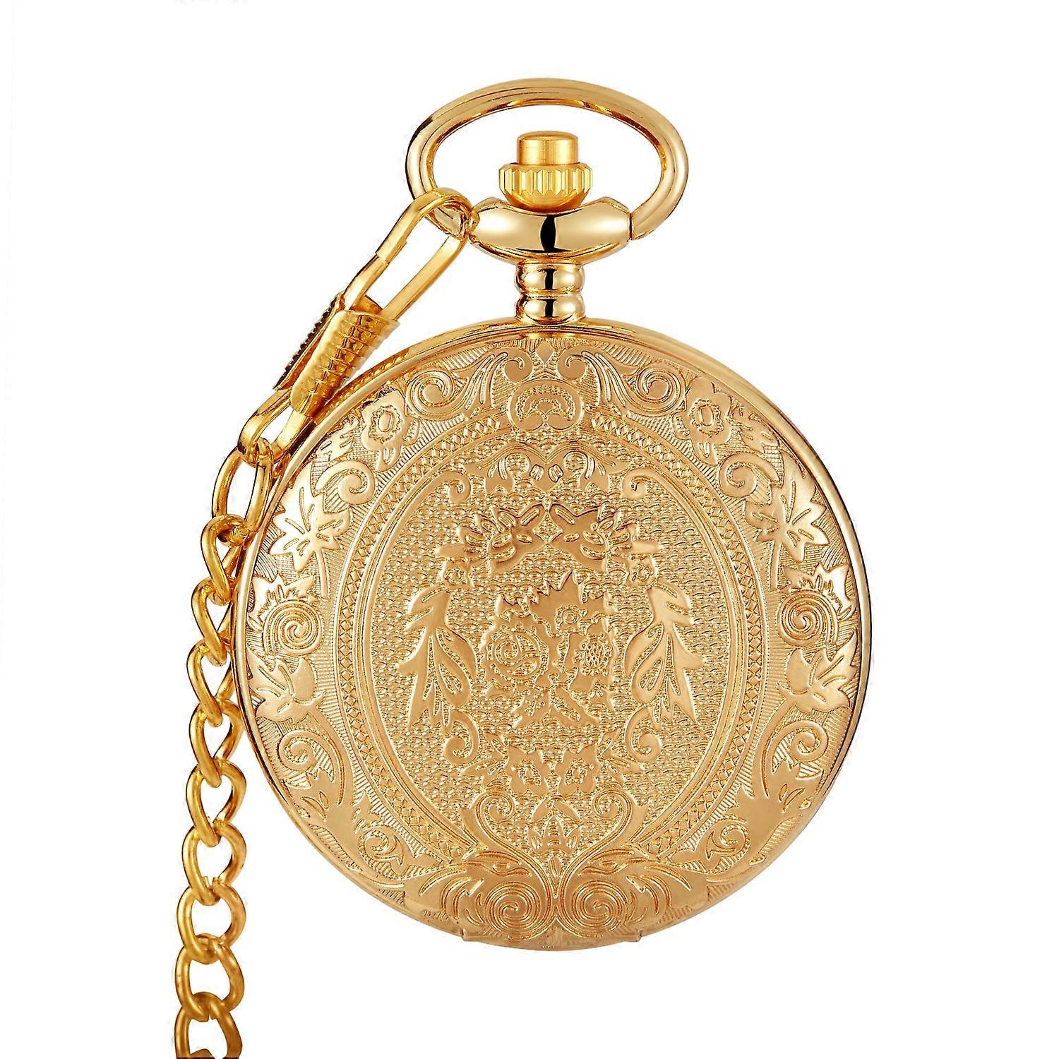 Antique Steampunk Vintage Arabic Numerals Quartz Pocket Watch Floral Pattern Case Necklace Pendant Clock Chain Men Women