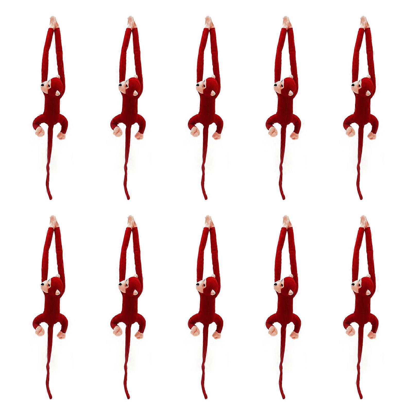 Stuffed Monkey Plush With Hook Loop Hands Curtain Dolls Monkey Plush Doll Long Arm Tail Monkey Stuffed Doll Red