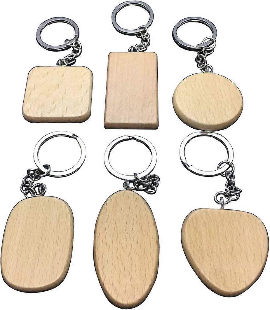 Suneast 6 Pcs DIY Blank Wooden Keychain Natural Wood Keyring Metal Key Ring Bag Car Pendant Ornaments for Women Men Christmas Valentine s Day Gifts -
