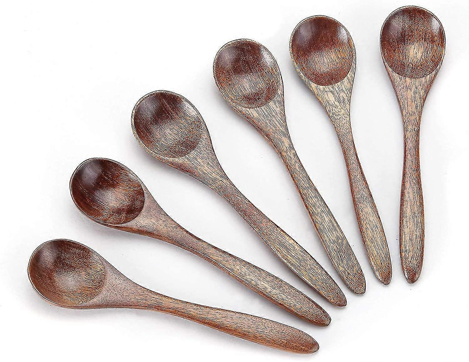 Sunrain 6pcs Small Wooden Spoons, Wooden Teaspoon Small Teaspoons Serving Wooden Utensils Compatible With Cooking Small Condiments Spoon