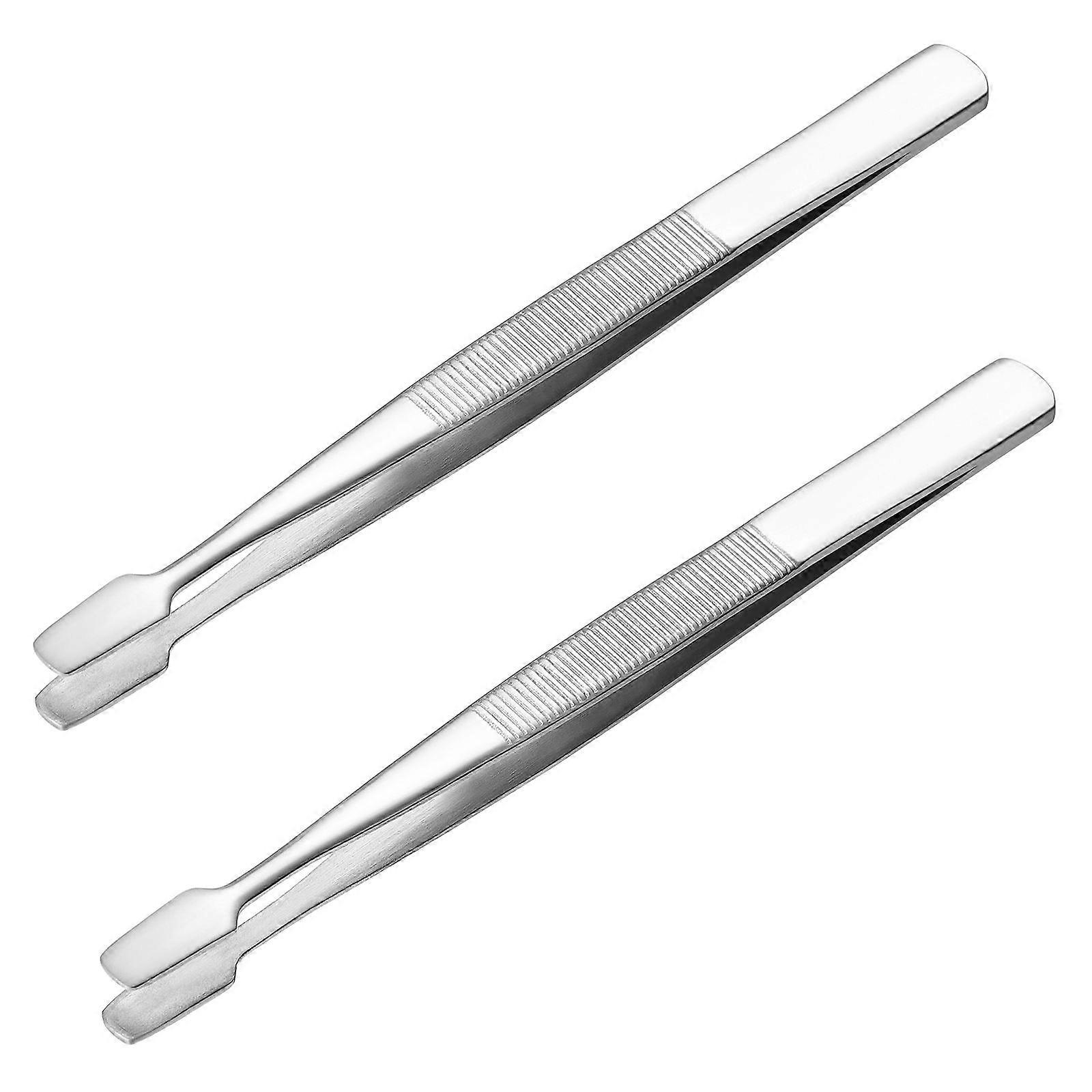 Supvox 2pcs Stamp Tweezers Stainless Steel Philately Stamps Collector Tools Flat Paddle End Stamp Tongs Tweezers