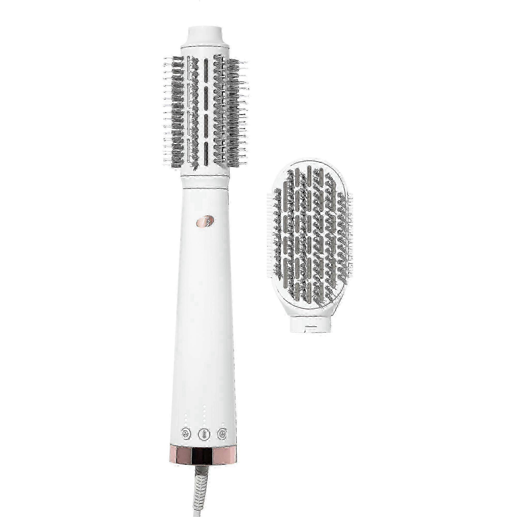 T3's AireBrush Duo Interchangeable Hot Air Blow Dry Brush takes you from smooth to bouncy in one easy swap. Featuring an interchangeable brush design, 15 heat & speed combinations, and T3 IonFlow technology, it gives shiny, frizz-free results.BenefitsFeaturing an interchangeable design and 15 styling combinations - it's never been easier to get the perfect blowout for every hair type.Features T3 IonFlow technology: gives an ion-enriched airstream and precise, digitally controlled heat for polished, frizz-free results. Interchangeable Design: Easily change blow dry air brush attachments for complete styling versatility. 2.5'' Round Brush: For bold, voluminous looks. 3'' Paddle brush: For sleek and straight looks. EvenStream Vents: Ensure even, consistent airflow and fast styling. SmoothGrip Bristles: For optimal tension and styling control. 5 heat settings: For every hair type and texture. 3 speed settings: For maximum styling control. CeraGloss ceramic surface: For smooth, shiny results. Volume Booster Switch: Boosts texture and volume.* Ion Generator: Helps to fight frizz, boost shine, and lock in style. Lock-in Cool Shot Button: A burst of cool air locks in any style for a smooth, sleek finish. Lightweight: Weight-balanced blow dry brush design for a luxurious styling experience. Long Life Motor: Ensures a reliable performance. 9ft., 360° Professional Swivel Cord: Prevents cord from getting tangled or twisted. 2-Year Warranty: Comprehensive coverage and support options. Active Ingredients: Pencil: Behenic Acid, Synthetic Japan Wax, Triethylhexanoin, Sucrose Tetrastearate Triacetate, Dipentaerythrityl Hexahydroxystearate/ Hexastearate/ Hexarosinate, Synthetic Fluorphlogopite,Hydrogenated Castor Oil, Sorbitan Sesquiisostearate, Tocopherol, Aluminum Hydroxide, Caprylyl Glycol, Phenoxyethanol, Hexylene Glycol, Kaolin, Orbignya Oleifera Seed Oil. Titanium Dioxide (CI 77891), Iron Oxides (CI 77491, CI 77492, CI 77499). Gel: Water/Aqua/Eau, Acrylates Copolymer, Synthetic Beeswax, Butylene Glycol, Copernicia Cerifera (Carnauba) Wax/Cera Carnauba/Cire De Carnauba, Palmitic Acid, 1,2-Hexanediol, Behenyl Alcohol, Stearic Acid, Tromethamine, Dimethicone, Pentylene Glycol, Hydroxyethylcellulose, Dipropylene Glycol, Potassium Sorbate, Phenoxyethanol, Panthenol, Tocopherol, Caprylyl Glycol, Disodium Edta, Ethylhexylglycerin, Kaolin, Orbignya Oleifera Seed Oil, Disodium Phosphate, Polysorbate 60, Sodium Phosphate. Titanium Dioxide (CI 77891), Iron Oxides (CI 77491, CI 77492, CI 77499).Product Packaging: Please note that some manufacturer may often change their packaging. This product may arrive different from what is pictured. We will always ship the most up-to-date packaging to our customers. Please contact us if you have any questions about this product or would like to request an older version of this product.