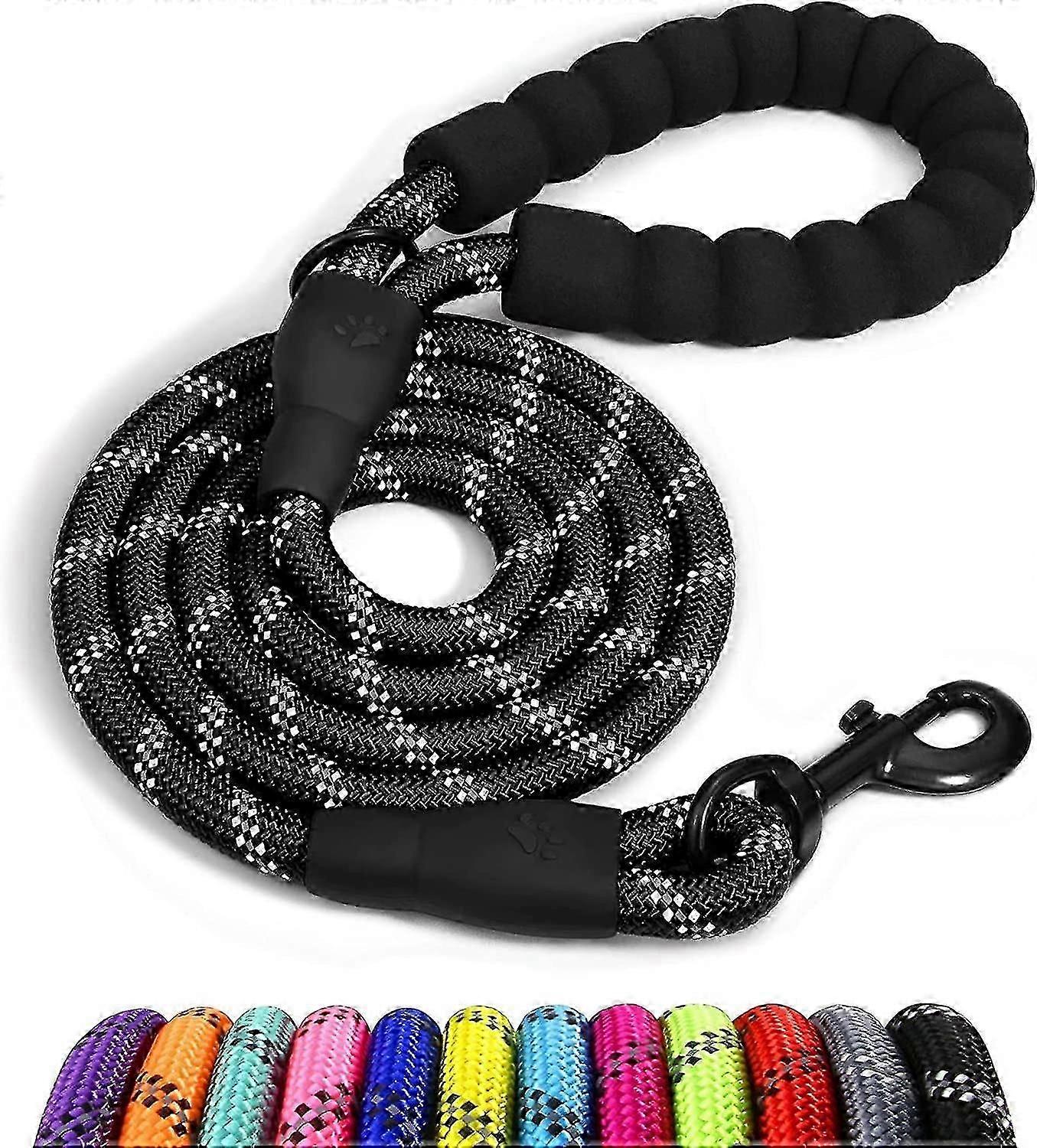 Taglory Rope Dog Lead with Soft Padded Handle, 1.2m Reflective Dog Lead and Multi-Colour for Medium Dogs, 1.0cm, Black Zekai