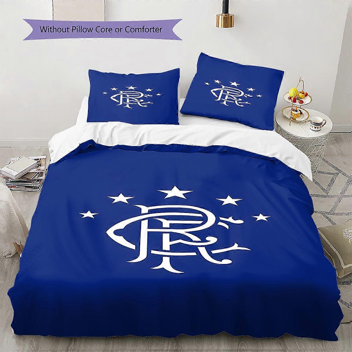 TE440 Rangers FC Crest Pattern Bedding Quilt Cover Set Pillowcase Soft Home Bedroom Decoration Bedding Christmas Halloween Gifts Birthda