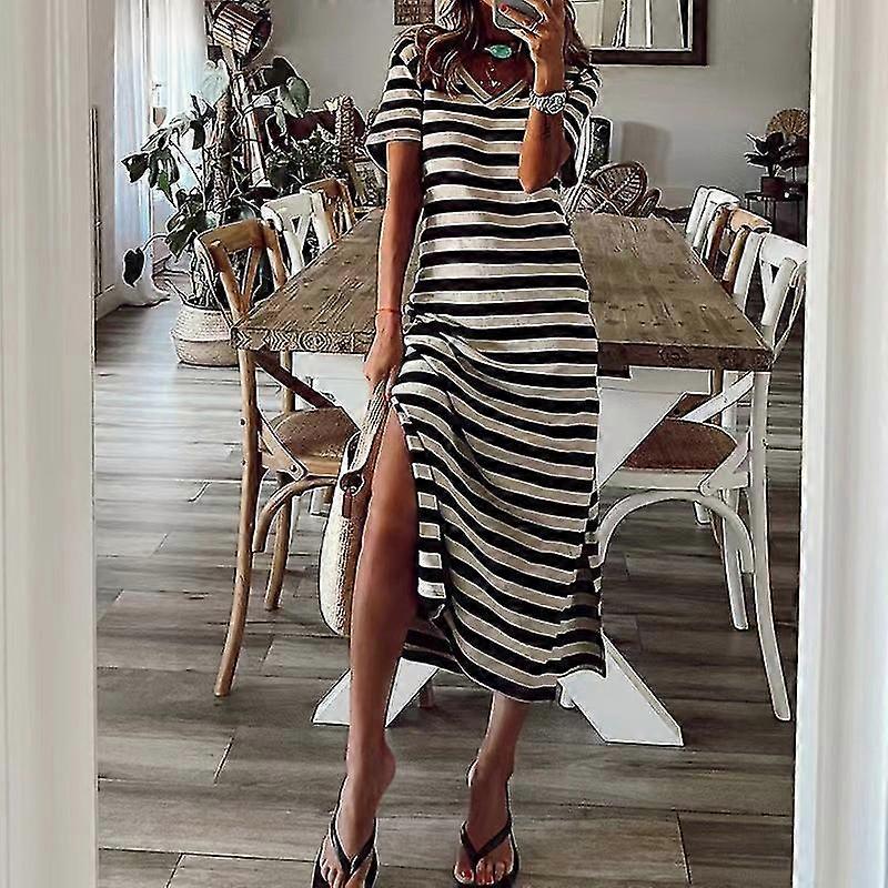 Tflycq Women Short Sleeve Long Dress Casual Holiday Maxi Dresses V Neck Summer Beach Sundress