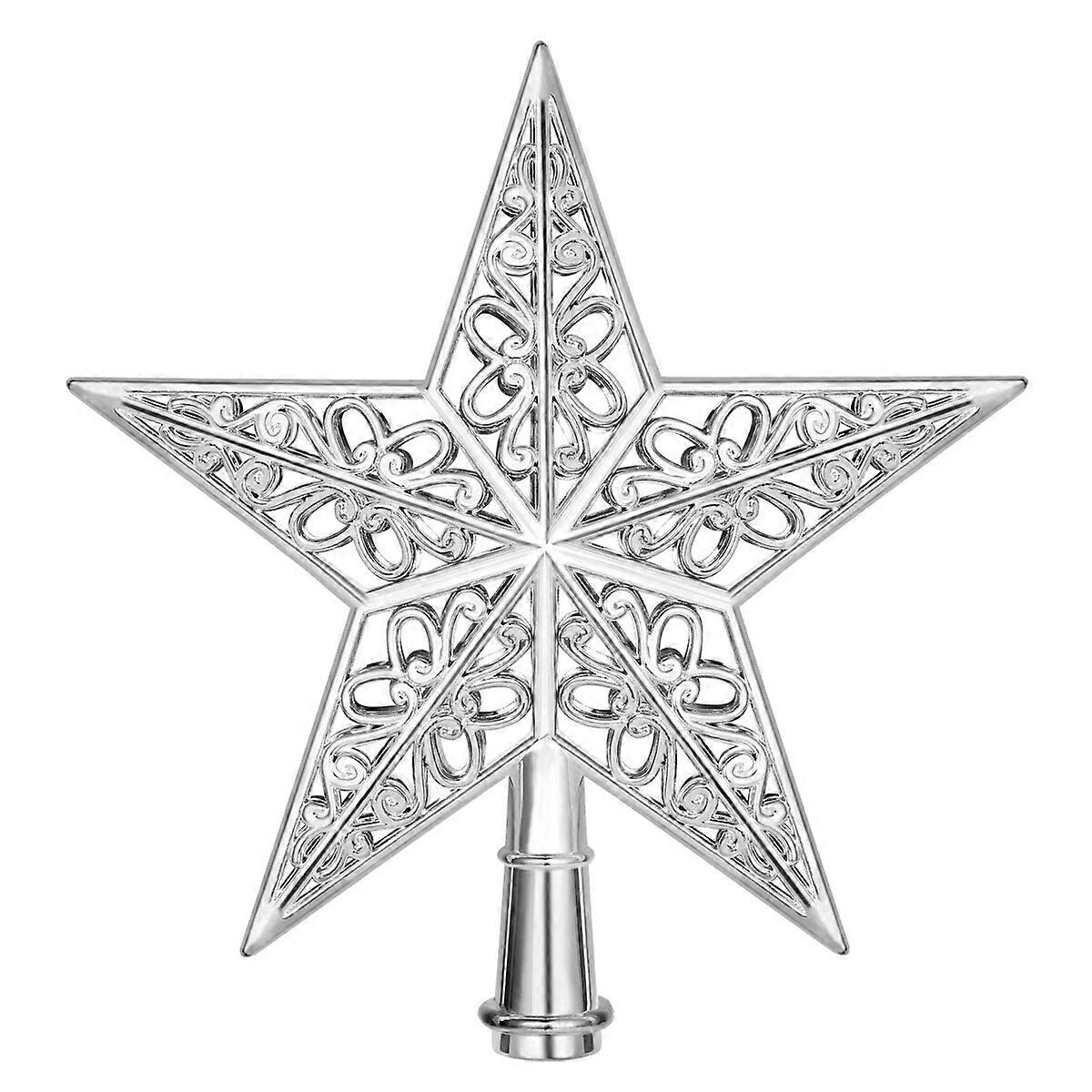 Tinksky Hollowed-out Christmas Tree Sparkle Star Glittering Hanging Xmas Tree Topper Decoration Ornaments Home Decor (Silver)