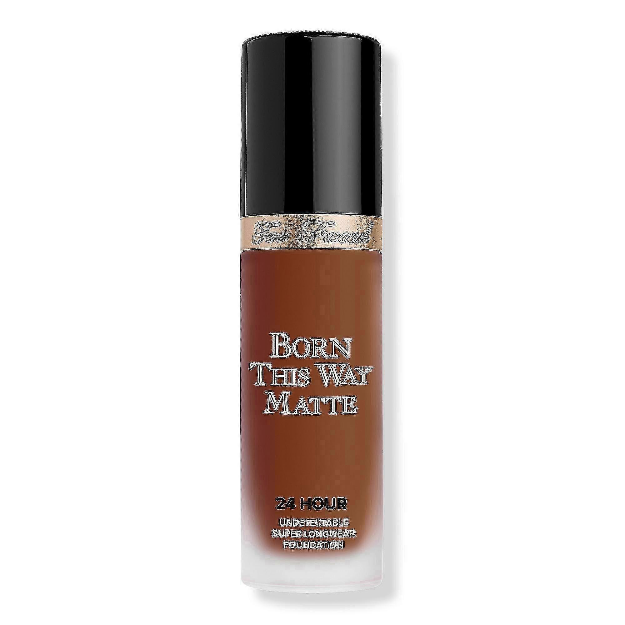 Too Faced Born This Way Matte 24 Hour Foundation is your "life-proof" foundation that controls oil and keeps you looking flawless for a full 24 hours. Benefits Medium-to-full buildable coverageProvides a soft focus matte finishSkin looks smooth and flawlessSkin stays matte without looking flat or drabSuper long-wearing for 24 hoursNon-acnegenicWaterproofOil-controllingTransfer-resistantColor trueOil-FreeSweat and Humidity-resistantVeganCruelty freeParaben free Features In a 1 week study of 107 women:96% said this foundation feels weightless on skin99% said this foundation blurs away imperfections93% said this foundation provides undetectable coverage92% said this foundation does not require touch ups Key Ingredients Coconut Water: Aids in delicately replenishing skin's moisture levelsAlpine Rose: Helps support skin's health and resilienceHyaluronic Acid: Gives a smoother, more youthful appearance Active Ingredients: Using the [Mr. Perfect Foundation Brush](https://www.ulta.com/mr-perfect-foundation-brush?productId=pimprod2007560), a sponge, or fingers, blend from the center of the face outward. Repeat for more coverage. Suggested Use: Too Faced Born This Way Matte 24 Hour Foundation is your "life-proof" foundation that controls oil and keeps you looking flawless for a full 24 h. . . Expiration Date: We have fresh stock each week with exceptional expiration dates prior to APRIL 2024. Products will expire no later than six months to 1 year after receipt. Product Packaging: Please note that some manufacturer may often change their packaging. This product may arrive different from what is pictured. We will always ship the most up-to-date packaging to our customers. Please contact us if you have any questions about this product or would like to request an older version of this product. Healthcare Disclaimer: Content on this site is for reference purposes only. OTC Shoppe Express does not represent or warrant that the nutrition, ingredient, allergen and other product information on our Web or Mobile sites are accurate or complete, since this information comes from the product manufacturers. On occasion, manufacturers may improve or change their product formulas and update their labels. We recommend that you do not rely solely on the information presented on our Web or Mobile sites and that you review the product's label or contact the manufacturer directly if you have specific product concerns or questions. If you have specific healthcare concerns or questions about the products displayed, please contact your licensed healthcare professional for advice or answers. UPC: 000002566735 Weight: 0.57 lbs