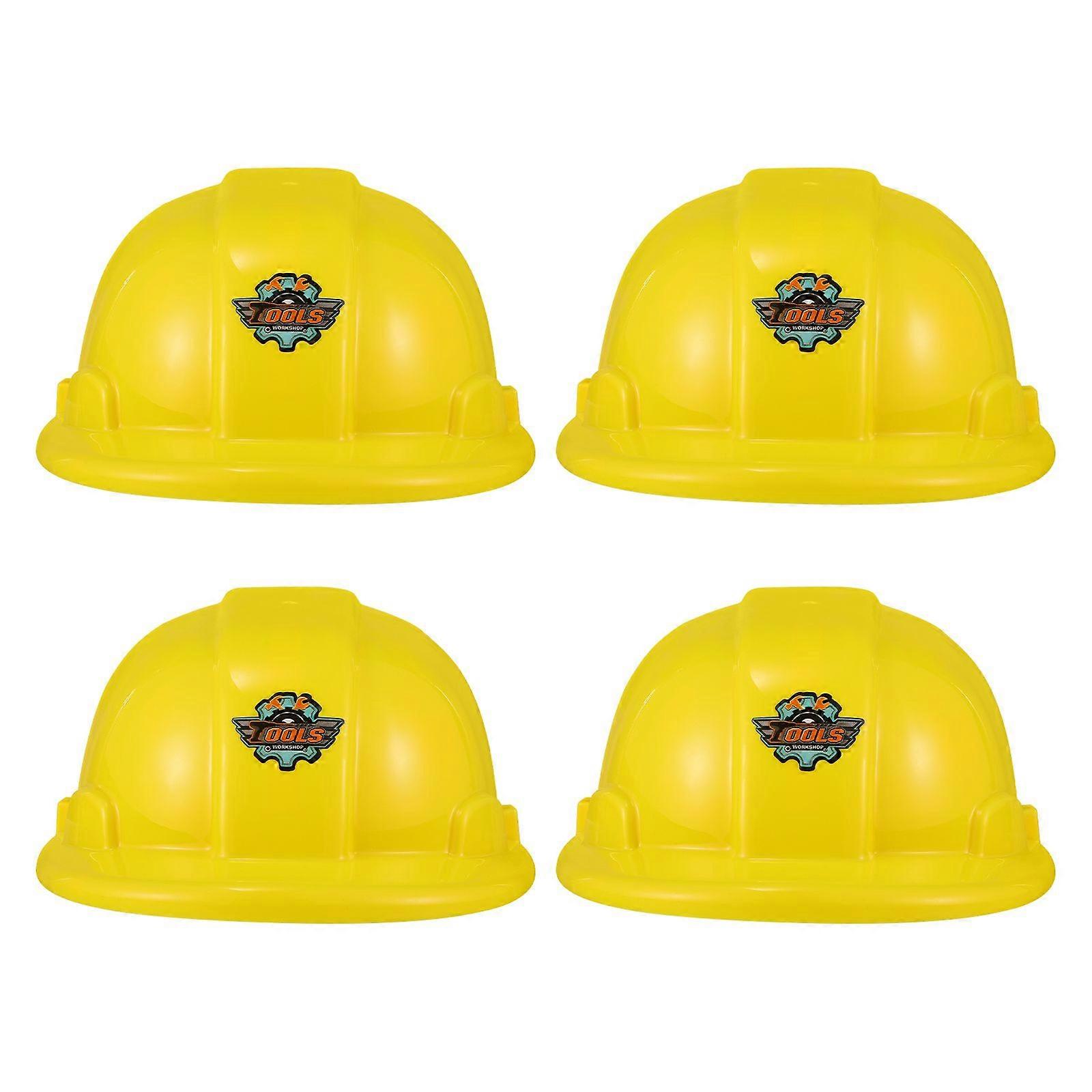 Toyvian 4pcs Construction Hard Hats Plastic Kids Party Hat Engineering (Yellow)