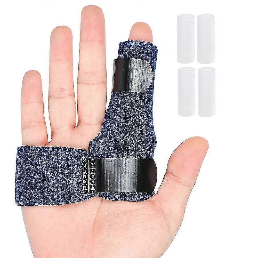 TRIGGER FINGER PAIN RELIEF: The finger splint works as a straighten brace, and has great effect in supporting the finger to reduce stiffness. Ideal for use on finger stiffness, osteoarthritis, sprained knuckles etc. Helped alleviating the locking, popping, bending, swelling, soreness and stiffness FINGER PROTECTION SET: 1 finger splint+ 4 pcs gel finger sleeves,Works for men, women and kids.Designed with built-in aluminum bar, it can use Index, Middle, Ring, Pinky Fingers, please combine the gel sleeves to use if you have small finger, it can more work for Arthritis Pain, Sport Injuries. DURABLE AND COMFIRTABLE: Made of high composite material, extremely breathable and comfortable to wear, compact and lightweight and convenient to carry BETTER RECOVERY: Not only can be worn during the day when you work, like typing, cooking and driving, but also can be worn at night when you are sleeping or for treating conservatively to finger surgery or pain relief after surgery GIFT FOR OTHERS: Ideas for use on finger stiffness, osteoarthritis, sprained knuckles etc. Helped alleviating the locking, popping, bending, swelling, soreness and stiffness, as a gift for focus on your family, friends, lover' health life.