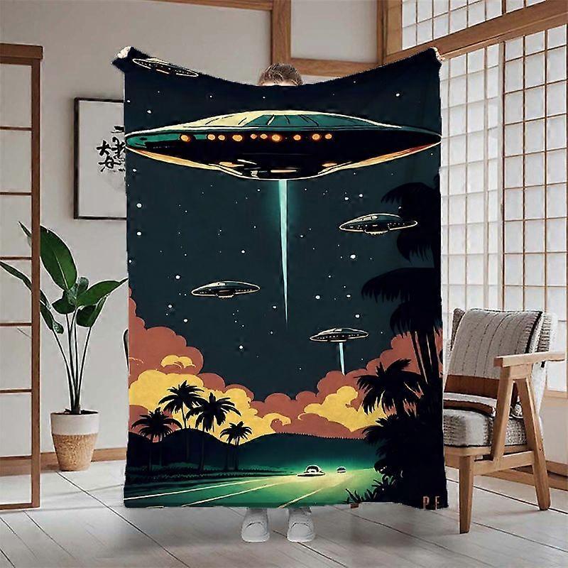 UFO Flying Saucer Alien Spaceship flannel Blanket - Lightweight Soft Throw with Spaceship, All-Season Bedspread for Couc-EDFGH340