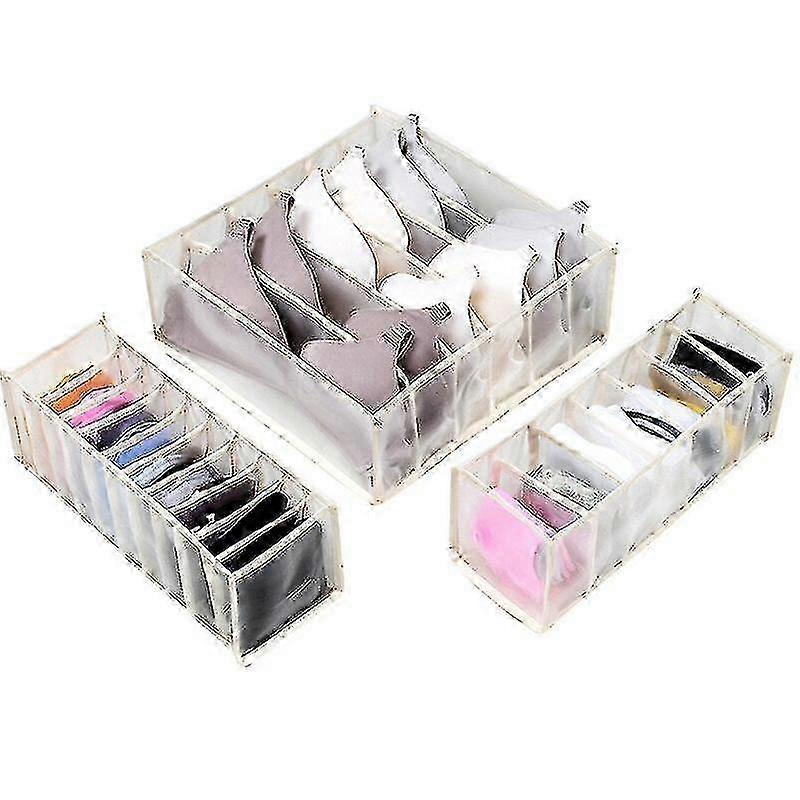 Underwear & Bra Storage Box Organizer with 3 PCS Set for Socks, Scarves, and Drawer in Beige