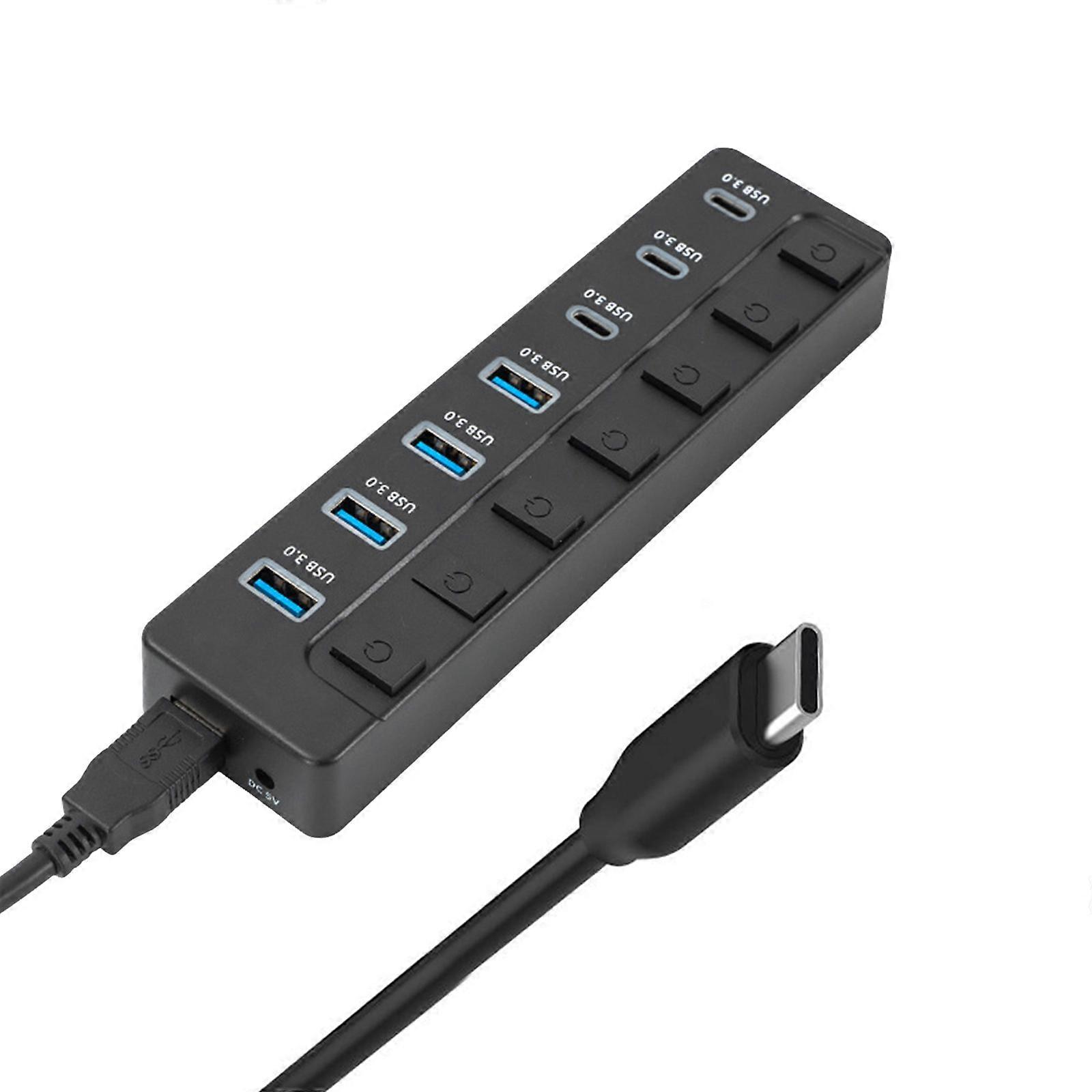 USB C Adapter 7 Port Multi Splitter 5Gbps Fast Speed Transfer With Individual Switches For Desktop Laptop Multicolor