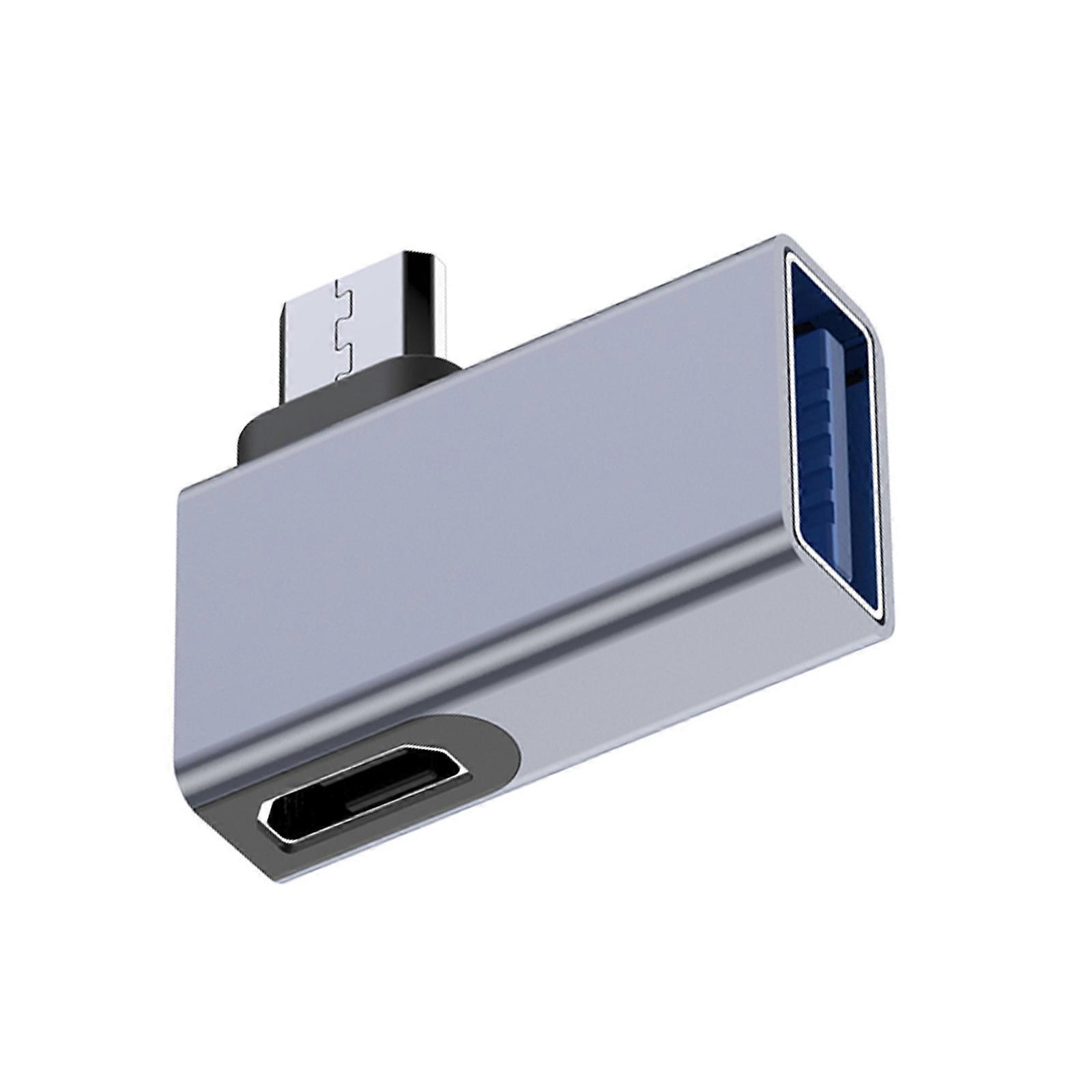 USB Host Adapters for Smartphone Keyboards Mice Seamlessly Device Connection, Right Angled with Additional Power Slot space gray