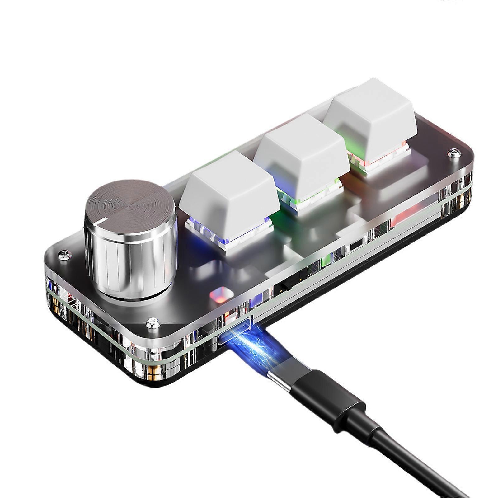 Features: Enhances your productivity with the USB Mini 3 Keys Keypad, featuring a customizable knob and mechanical switches for precise control and efficient multitasking. This small keypad is from durability acrylic and ABS, offering a Type C corded connection and hot swappable switches for seamlessly integration into any setting. For gamers, programmers, and professional high efficiency tools, this keypad diverses needs with its programmable macro functions. Perfectly suited for gaming, software development, and everyday office tasks, it empowers users excels in various environment with ease. With easy plugging designing, the keypad ensures quick setting and compatibility, essential for enhancing your computer peripherals collection. Specifications: Item: Wireless Programmable Keyboard Key: 3Keys and a Knob Size:about 98x40x16mm/3.86x0.16x0.06in Color: Black/White Cable: about 100cm/39.37in Weight:0.25kg Package Includes: 1PC Mini Keyboard with Receiver and Cable note: Please allow 1-2cm errors due to manual measurement. Pictures may not reflect actual color due to the monitors