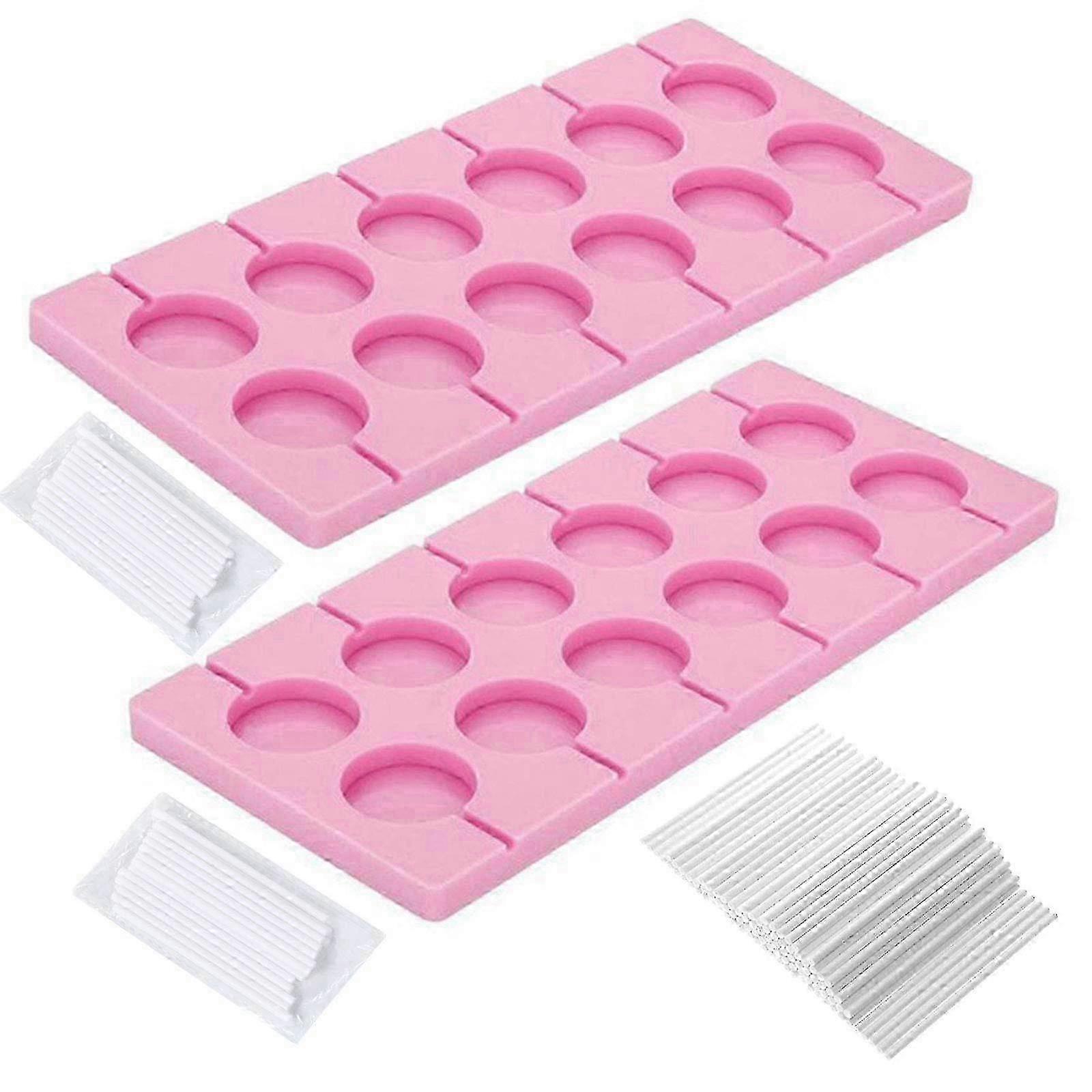 V-fox 2Pcs 12-Capacity Round Silicone Lollipop Molds with 140 Candy Sucker Sticks for Halloween, Christmas Parties