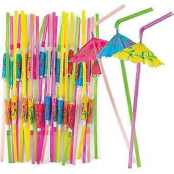 Veeki مظلة الشرب القش - حزمة السائبة من 200 لون متنوع القش حزب قابل للانحناء مع تفاصيل المظلة لأواني الشرب الحزب والديكور