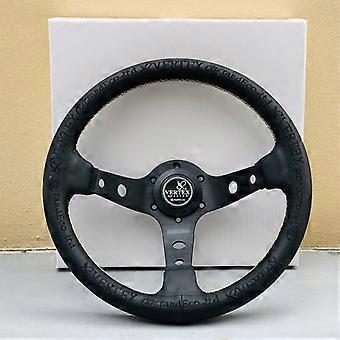 Vertex الجلود طبق عميق تعديل عجلة القيادة أسود أصفر التطريز 13 بوصة عجلة القيادة أغطية عجلة القيادة للمركبة