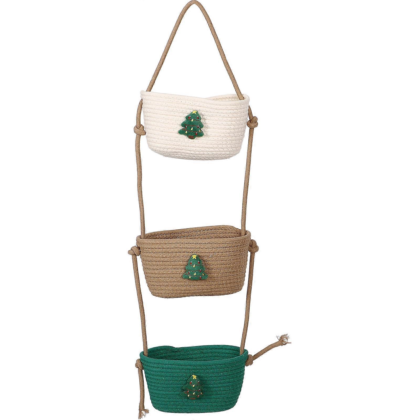 Wall Hanging Basket Multi-Layer Cotton Rope Storage Basket for 2Pcs
