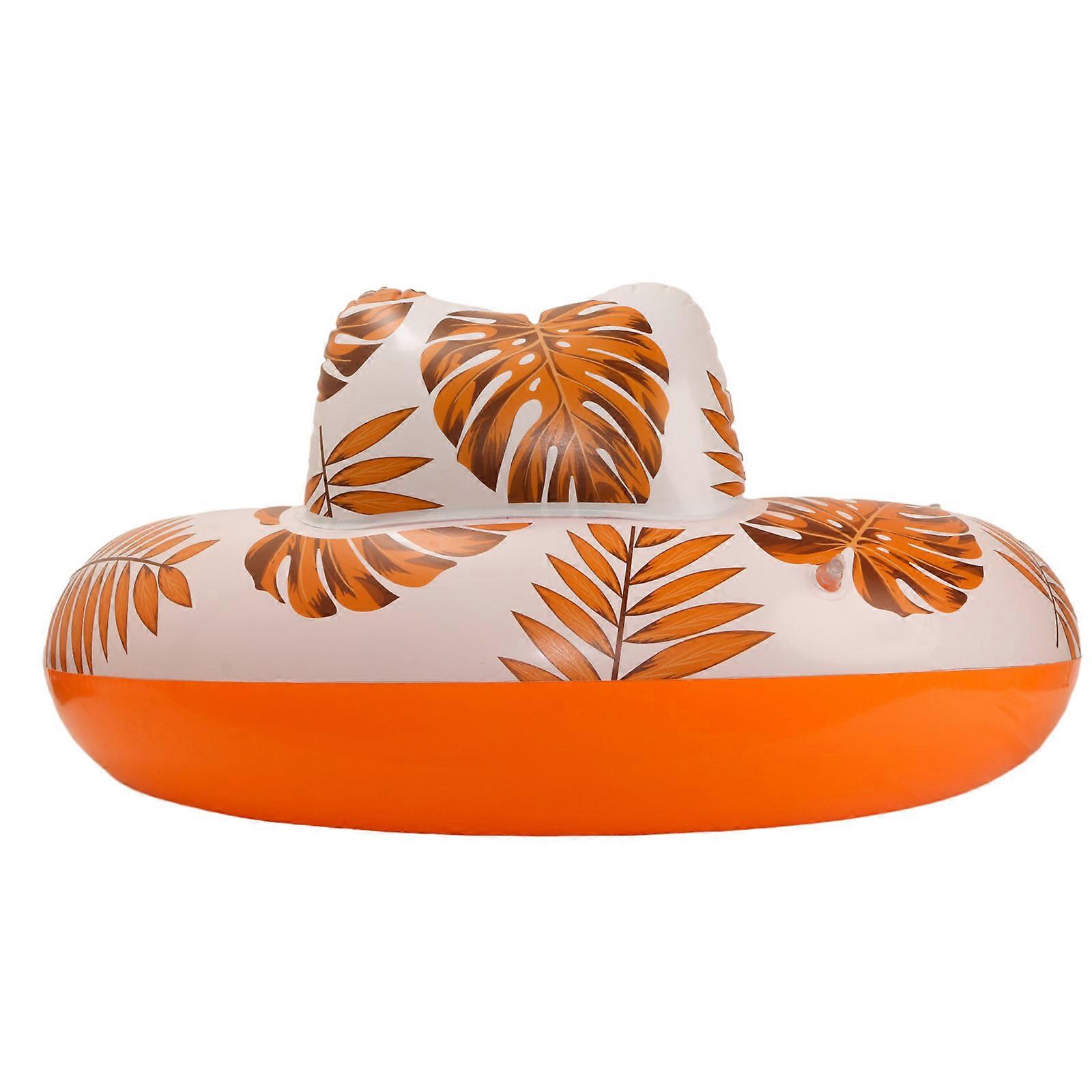 Water Hammock Pool Lounger Float Chair Leaf Pattern Inflatable Water Lounger Leaf Pattern with Cup Holder Orange