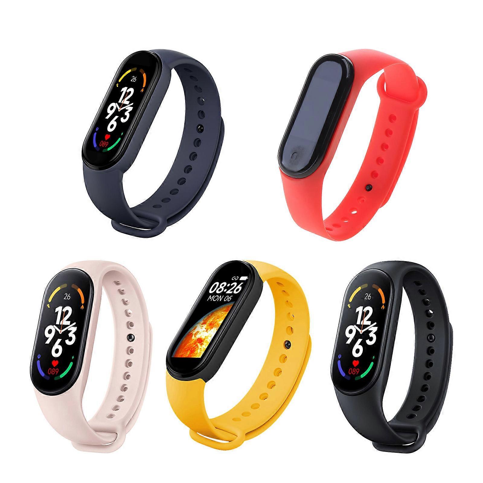 Features: 0.96-inch Dynamic color display screen increases the display area, making calls, messages, and reminders clearly visible. The unique layout brings you a clear visual experience. Made of eco-friendly silicone, soft and comfortable, lightweight and durable, making your sports life easier. IP67 waterproof, not afraid of rain, sweat and water, it can ensure freedom to wear anywhere, perfect for outdoor sports wear. for Health monitoring and multiple exercise modes, heart rate, blood pressure, sleep monitoring (sleep for time, quality of sleep), exercise modes: running, sit-ups, rope skipping, etc. Built-in 80mAh large capacity battery, super long battery life, super long standby for time of about 5 days, safe and power saving. Specifications: Material: Plastic+Silicone Size: Approx. 16x2 for cm/6.3x0.79 inch Color: Black, Pink, Orange, Yellow, Blue(optional) Model: M7 for smart bracelet Screen Size: 0.96 inches dynamic color display screen Bluetooth-compatible Version: BLE 4.0 Battery Capacity: 80 mAh Waterproof: IP67 Charging Interface: USB Charging Time: about 2 hours Working Time: about 2-3 days Standby Time: about 5 days Compatible Platforms: for Android 5.0 or above, for iOS 8.0 or above Intelligent Reminder: Call reminder, information push, sedentary reminder More Functions: Find bracelet, Alarm reminder, remote camera, Raise your hand to brighten, Music control, Weather APP support languages: English, French, German, Russian, Spanish, Japanese, Portuguese, Dutch, Polish, and more Package Includes: ​1x M7 for Smart Bracelet 1x Charging Cable 1x User Manual note: Please allow 1-2cm errors due to manual measurement,pls make sure that you do not mind before you order. Due to the difference between different monitors, the picture may not reflect the actual color of the item.