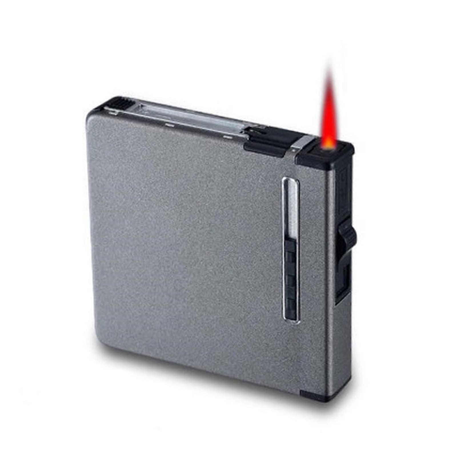 Windproof Butane Jet Flame Lighter with Integrated Refillable Cigarette Case for 20 King Size