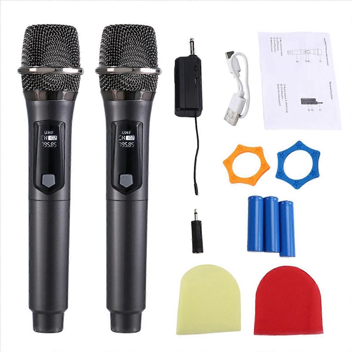 Wireless One-to-Two Home Microphone 6.35 Interface Professional Handheld Microphone for KTV Performance Stage Gray