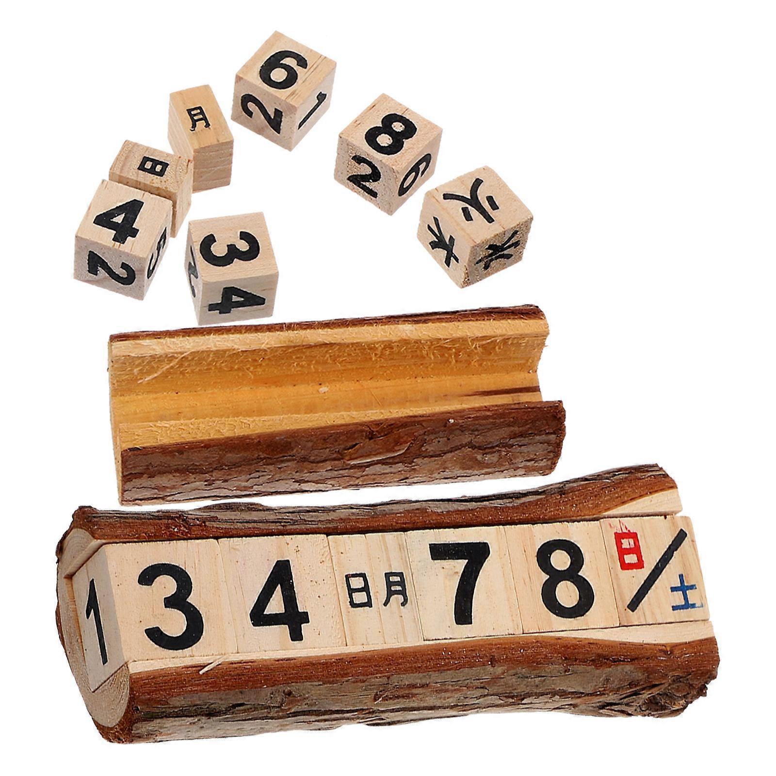 Wooden Desktop Calendar for Daily Use 2Pcs Retro Table Calendar Set