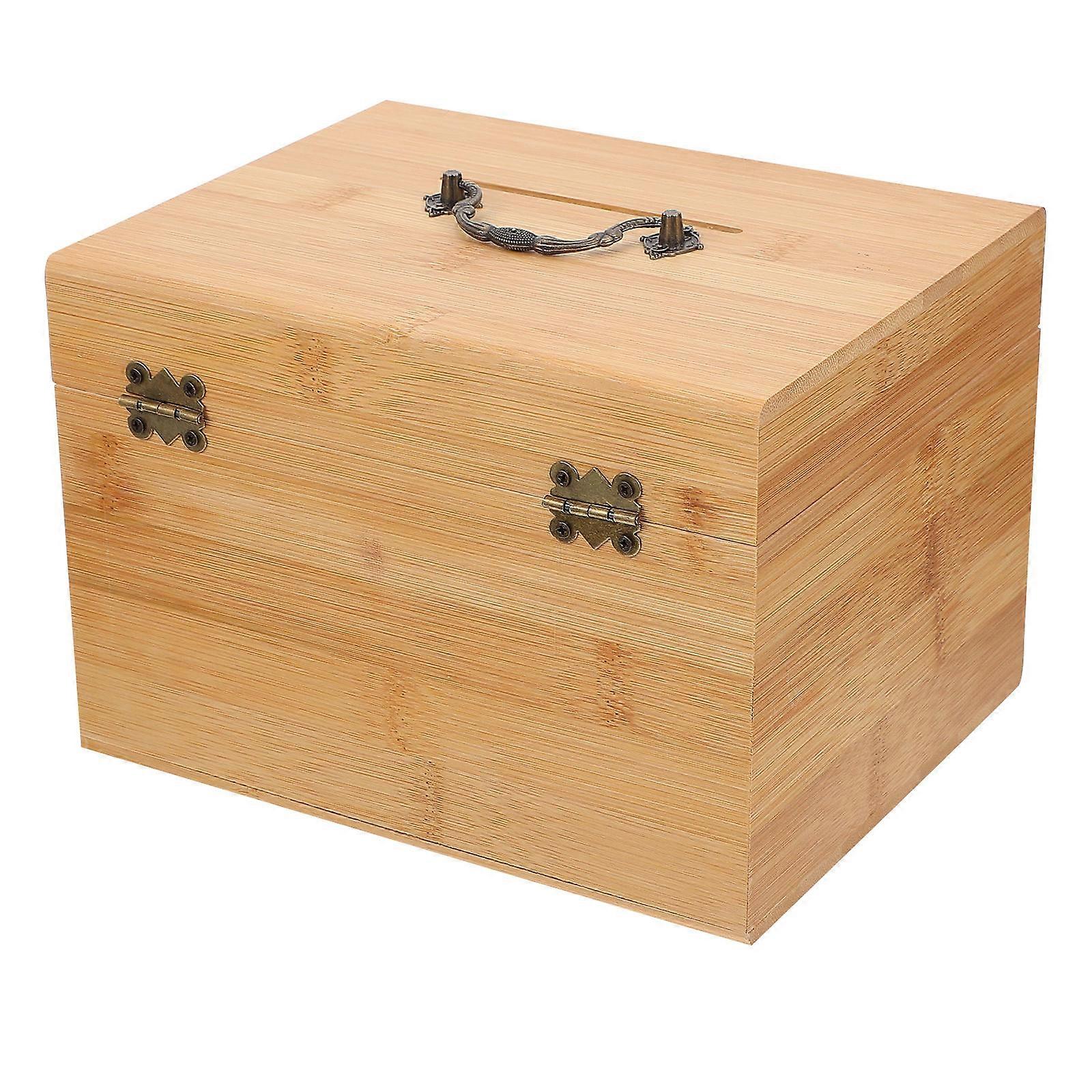 Wooden Piggy Bank Coin Change Container with Lock 2Pcs Yellow Boxes