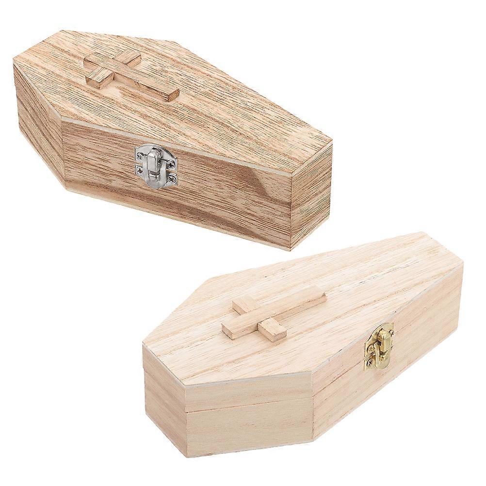 Worgeous 2pcs Halloween Fillable Hinged Coffin Jewelry Box Wood Serving Tray for Holiday Decor Party Favor Goth Doll Ring Box
