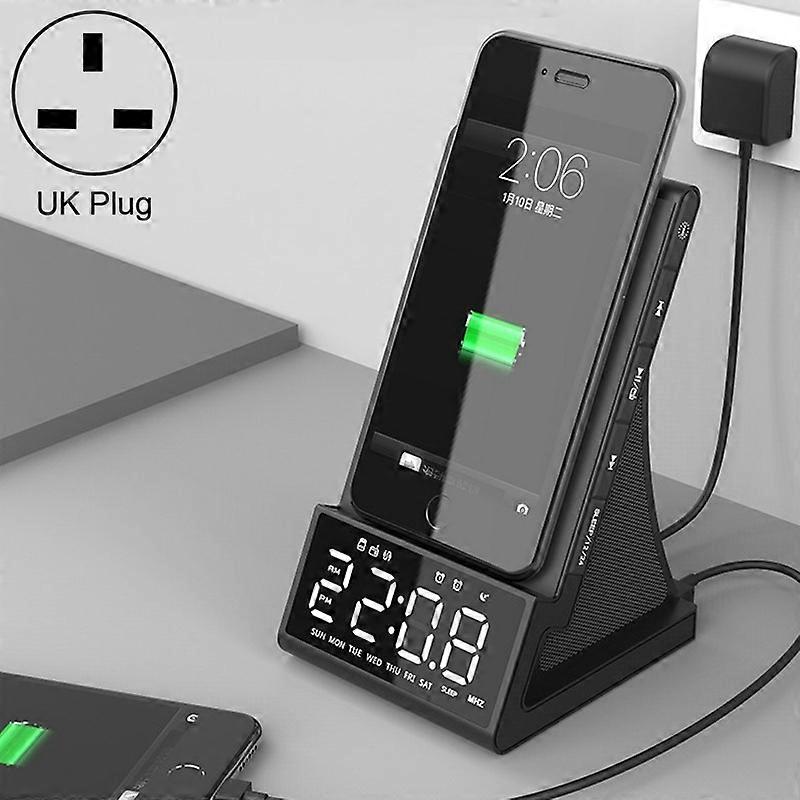 X7 Multifunctional Wireless Charging Bluetooth Speaker with Alarm Clock & Radio & Remote Control, Specification: UK Plug