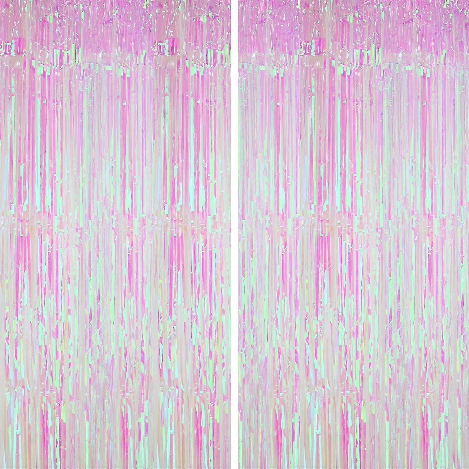 XtraLarge Iridescent Fringe Curtain, 6.4x8 Feet - 2 Pieces Iridescent Backdrop | Holographic Backdrop, Iridescent Party | Mermaid Foil Fringe Curtains