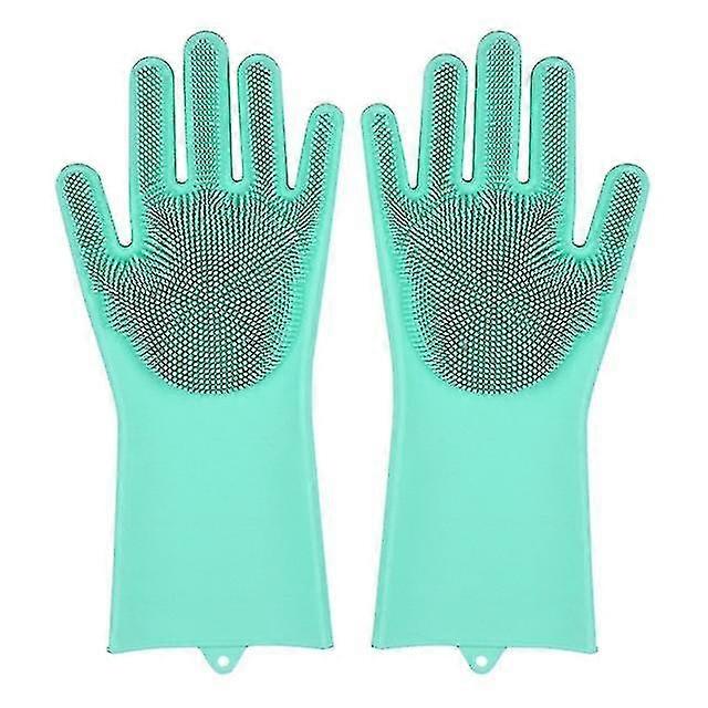 Yaju Dishwashing Cleaning Gloves Silicone Rubber Sponge Glove Household Scrubber Kitchen Clean Tools(2 Pieces, Green)