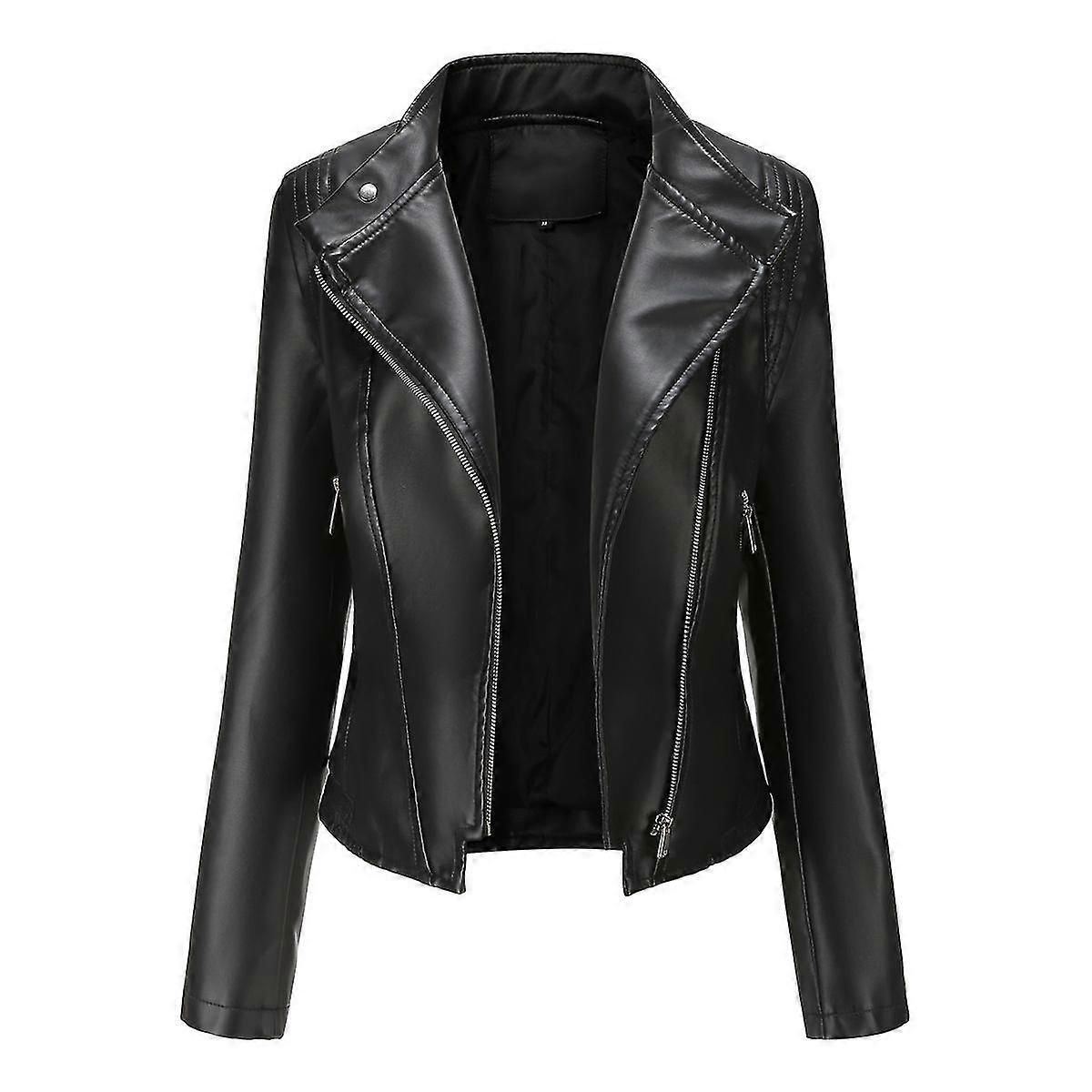 Yunclos Women's Stylish Slim Faux Leather Biker Outerwear Zip Jacket