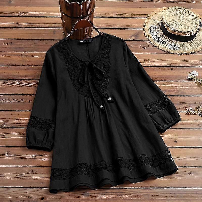 ZANZEA Women O-neck 3/4 Sleeve Cotton Tops Summer Retro Lace Crochet Splice Blouse Shirts