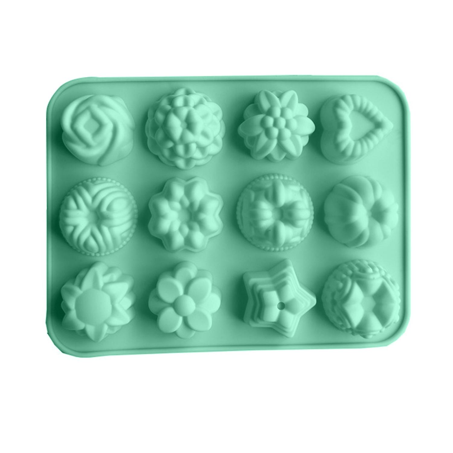 ZHOUBA Non-sticky 12 Cavities Cake Mold Rose Flowers Heart Shape Silicone Pastry Mold Kitchen Gadget