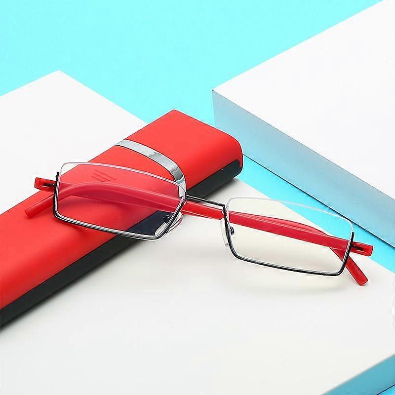 ZUEE Reading Glasses TR90 Stainless Steel Half Frame Anti-Reflective Unisex Women Men Optical Mirror Presbyopia Eyewear Case